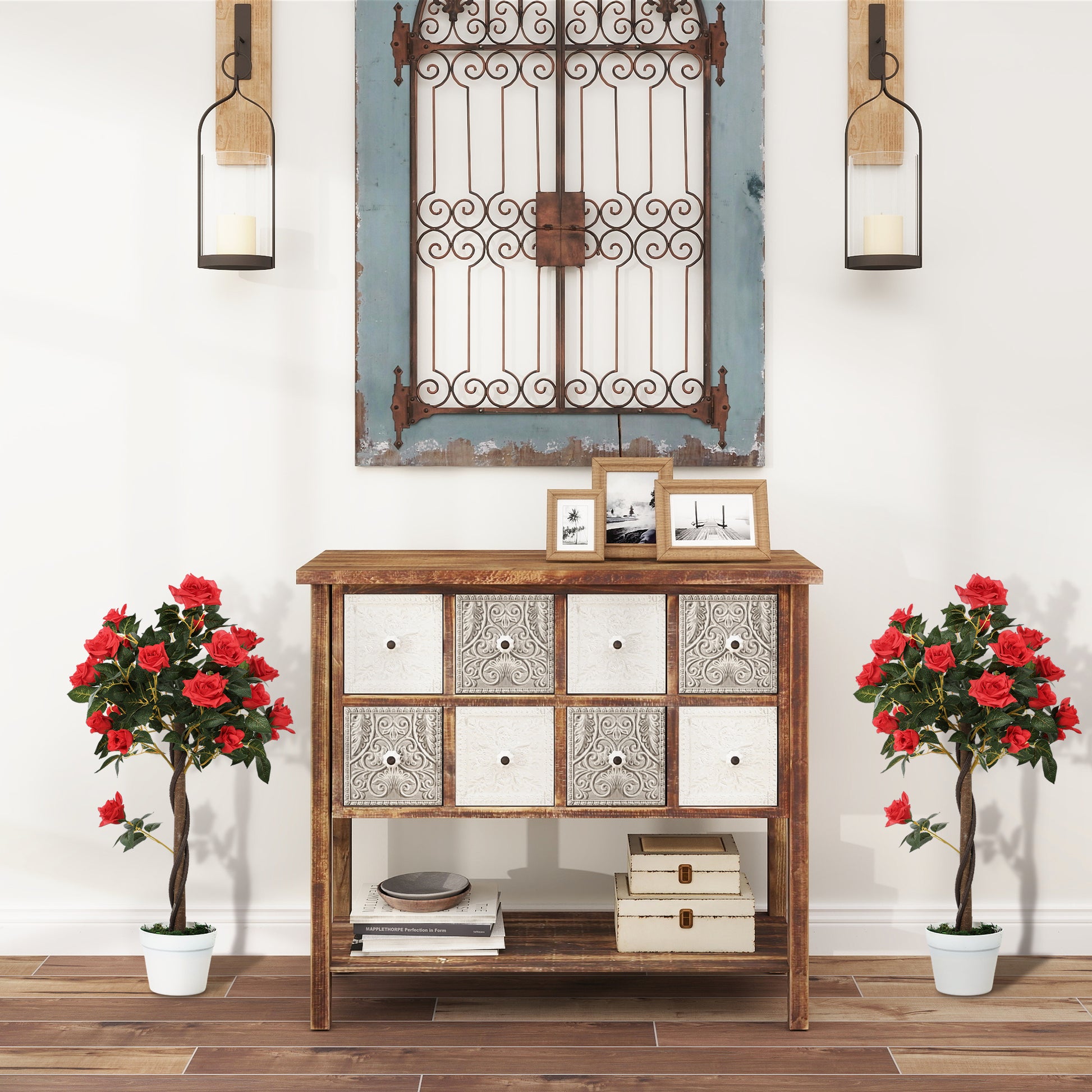Set of 2 Artificial Rose Plants in Pots – Indoor Home Decor, Red