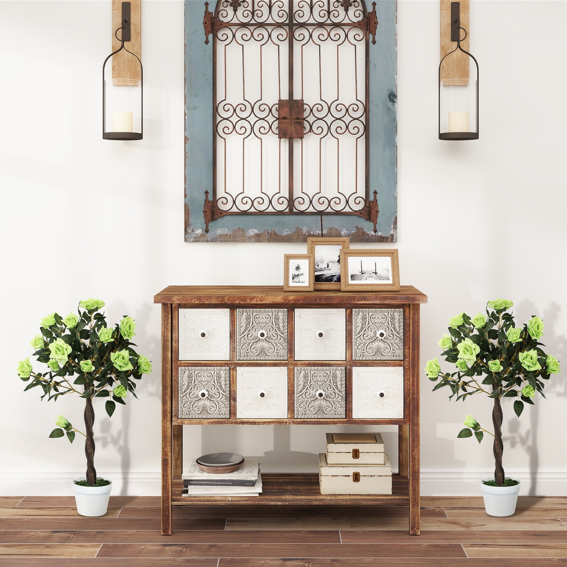 - Set of two faux rose trees
